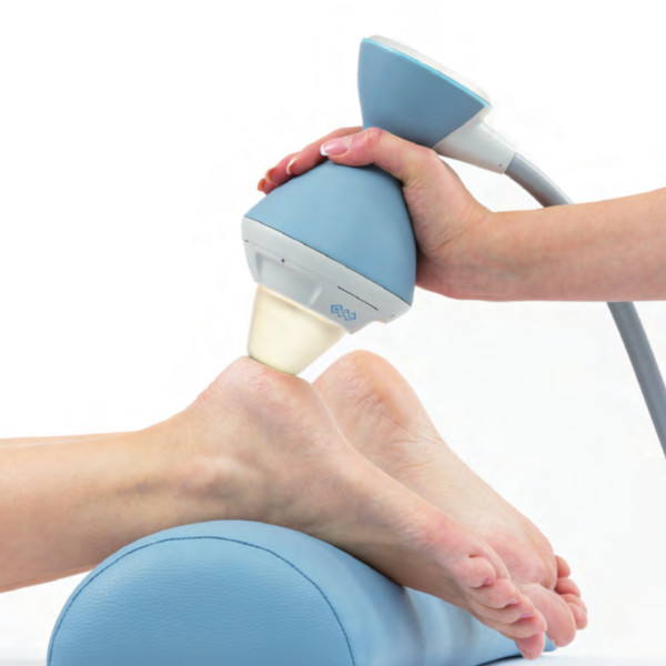 • Skupioną falę uderzeniową (FSWT) – precyzyjnie trafia w źródło bólu, rozbija zwapnienia i wspomaga gojenie,